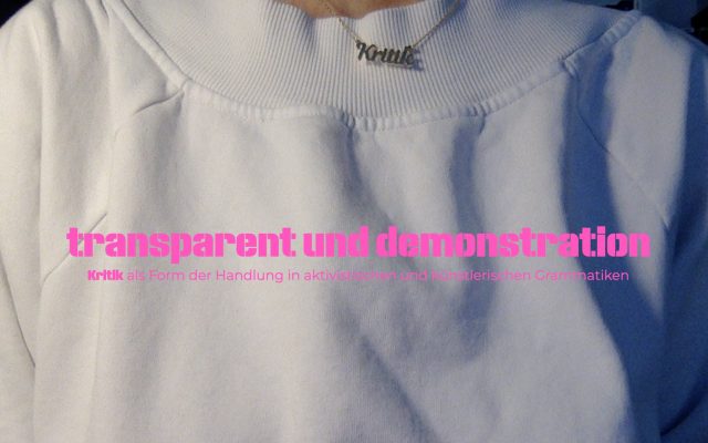 Vortrag »Transparent und Demonstration. Kritik als Form der Handlung in aktivistischen und künstlerischen Grammatiken« Allgemeiner Text zu der Ringvorlesung Formen der Kritik an der HFBK Hamburg: Welche Formen nimmt die (künstlerische)…